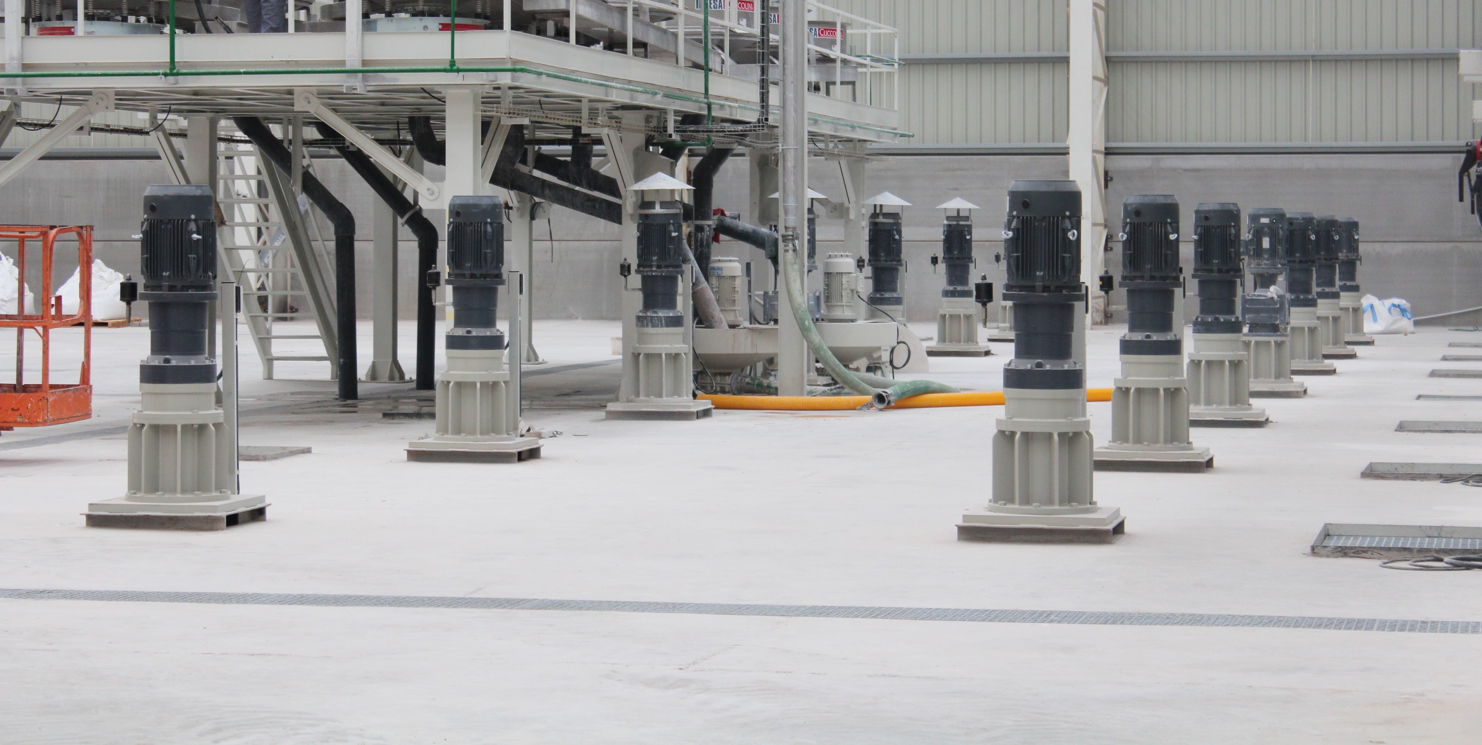 These agitators are installed to keep water–clay mixtures or water and crushed solids in suspension.